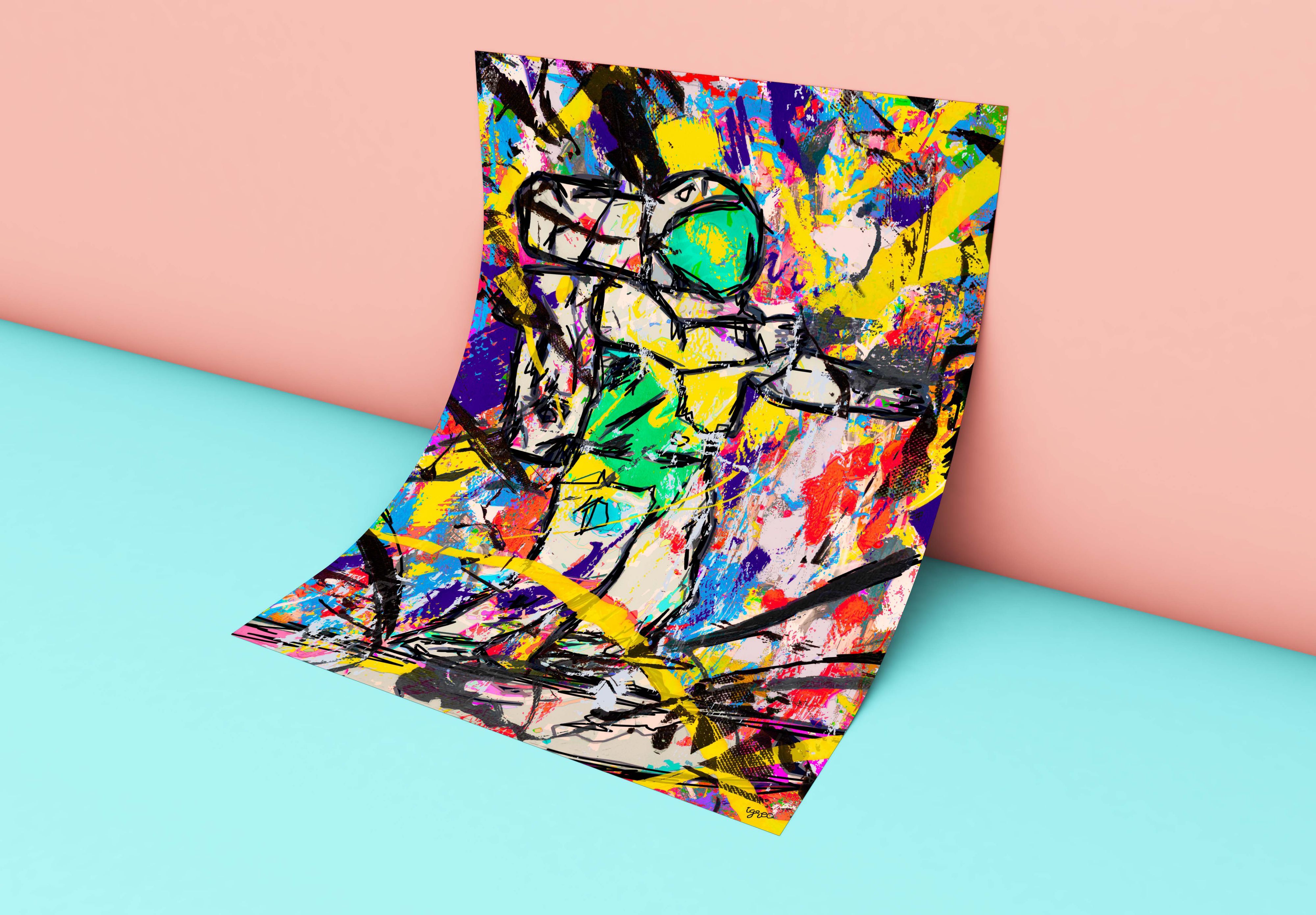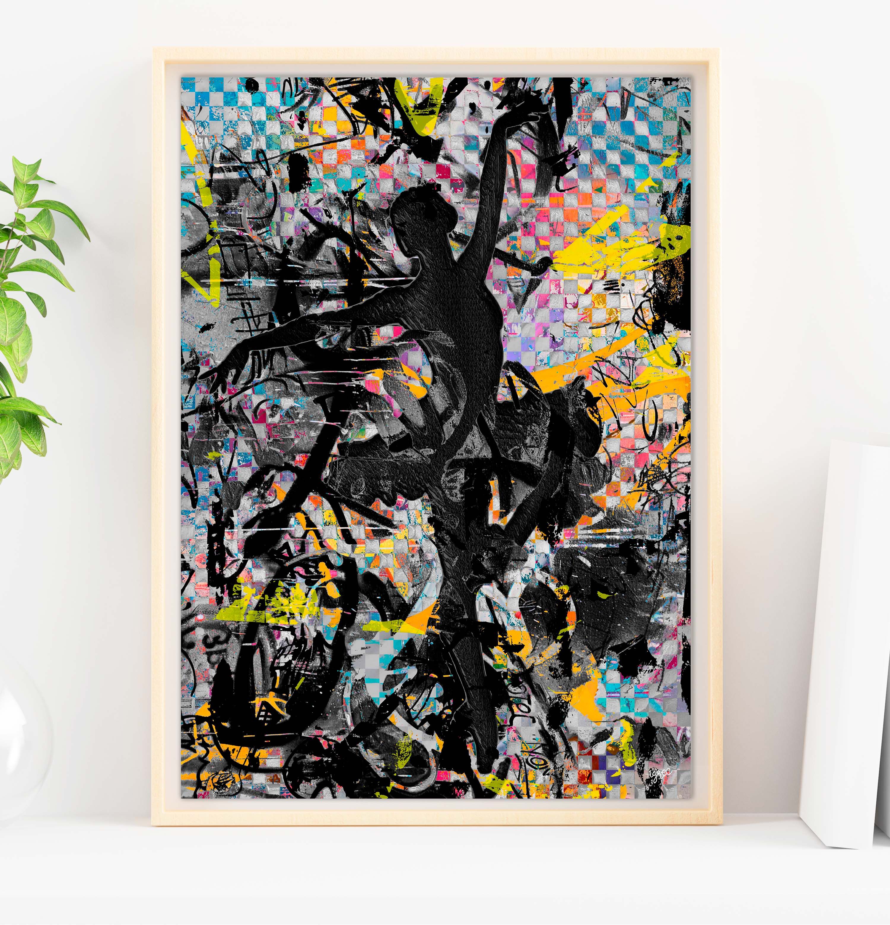 ... à travers des estampes en édition limitée, signées et numérotées. Mon univers mélange street art, pop art et graphisme contemporain, avec des couleurs éclatantes et des contrastes marqués.